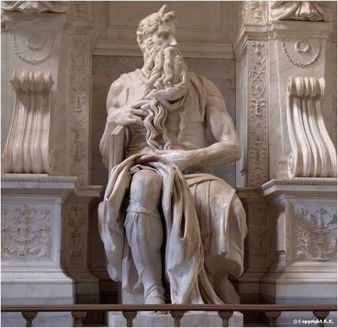 Michelangelo, Papa II. Julius’un mozolesi için başladığı Musa Heykeli’ni 1513-1515 tarihleri arasında, iki üç yıllık bir uğraşı sonucunda bitirir. Heykelde Musa’nın kaslarındaki gerilim, onu hemen kalkıp hesap soracak bir bir halde tutar. Sakalı adeta bir saç yumağı gibi hareketlidir ve havadaki rüzgarın salınımını ve az sonra kopacak fırtınayı imler. Gözler içsel bir öfkeyi, ilahi bir emir ve liderlik sorumluluğunu yansıtır. Dönük baş ve gövdesi, büyük bir hareket anından önceki duruşu ifade eder. Heykelin maddi heybetinin yanı sıra Musa’nın ruhunu hissettirecek bir gerçekliği vardır. Michelangelo, Musa heykelini bitirdikten sonra çekicini eline alır, bir adım geriye çekilir, karşısına geçer ve hayran hayran bakar eserine. Heykelin yüzündeki öfke, düşünce, derinlik ve canlılık kendisini de etkilemiştir. Sonra belki de o kadar gerçekçi görünür ki, Musa heykeline şöyle seslenir: “Neden konuşmuyorsun?”